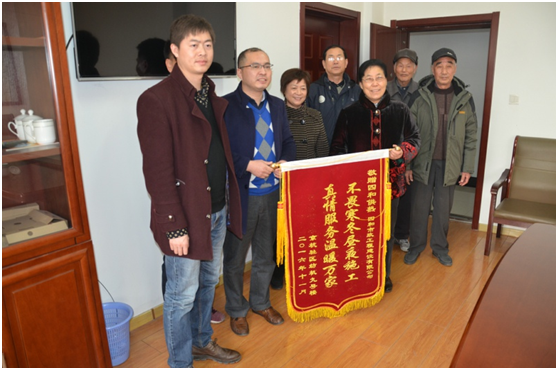 “你們的服務(wù)真是太周到了!終于解決了我們小區(qū)多年來的集中供熱問題,我們代表紡機廠宿舍全體熱用戶向你們表示忠心感謝!”11月30日下午,紡機廠宿舍幾名熱用戶來到濟寧四和供熱有限公司,送來一面繡有“不畏寒冬晝夜施工真情服務(wù)溫暖萬家”的錦旗,對四和供熱公司工作人員認(rèn)真負(fù)責(zé)、高效便民的優(yōu)質(zhì)服務(wù)表示感謝。
