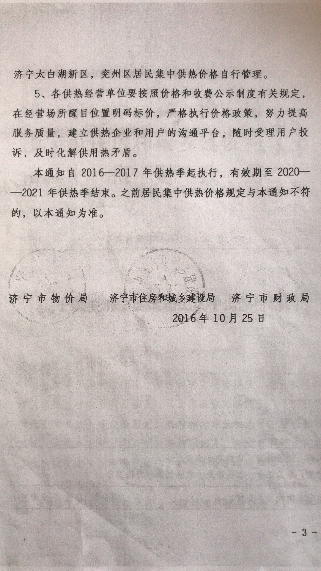 上一篇:四和供熱公司11月4日、5日暖氣打壓通知(請市民家中務(wù)必留人。 下一篇:關(guān)于濟(jì)寧城區(qū)非居民供熱價格的通知