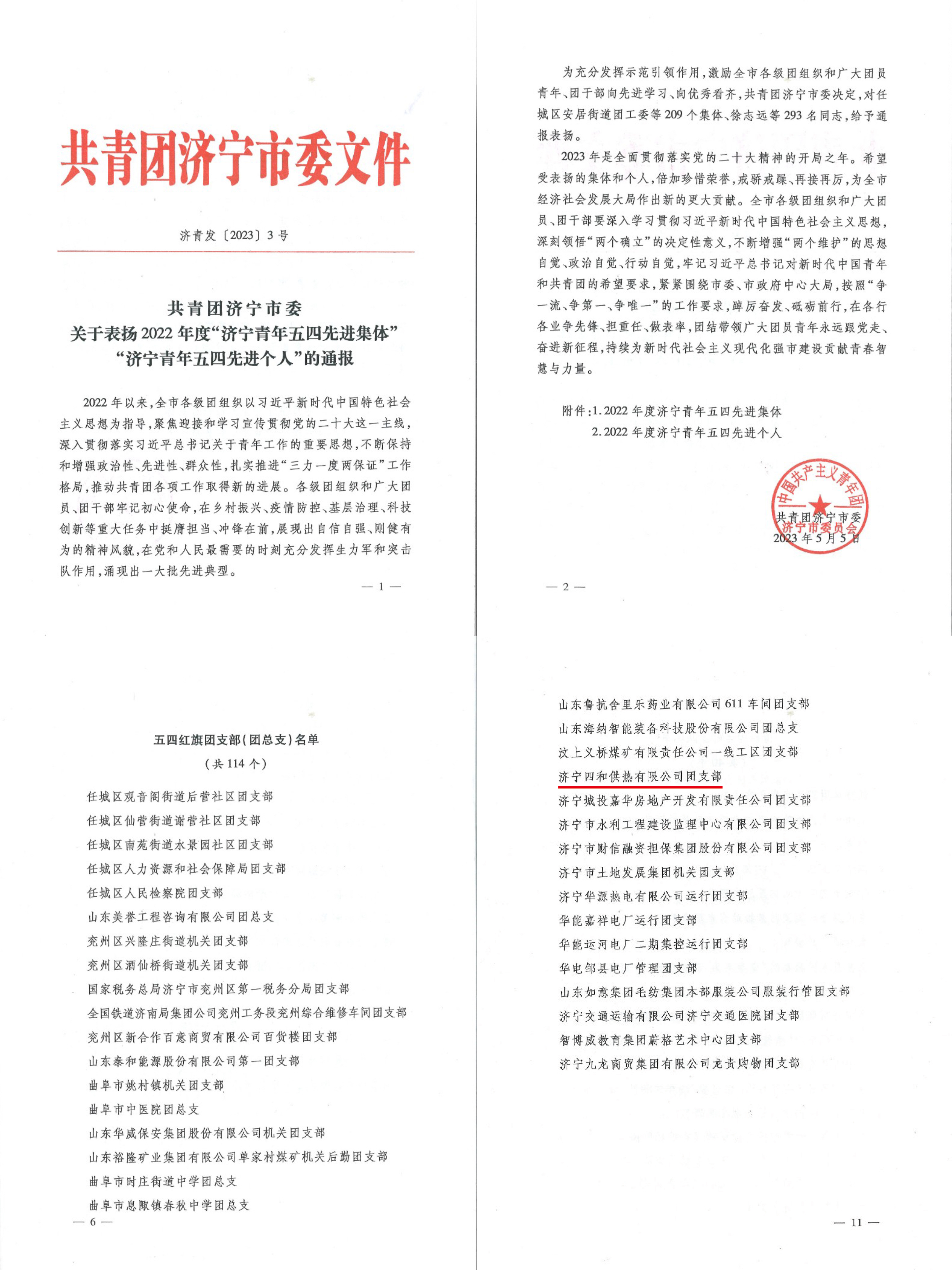 近日,共青團濟寧市委印發(fā)了《關于表揚2022年度“濟寧青年五四先進集體”“濟寧青年五四先進個人”的通報》,濟寧四和供熱有限公司團支部名列其中,獲評“濟寧市五四紅旗團支部”。